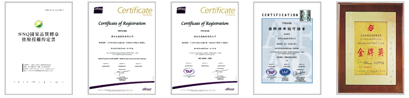 目前通過ISO22000、HACCP、食品業者衛生安全 (二級品管)、保健食品GMP、HALAL清真等工廠認證,給您真正安心MIT產品。